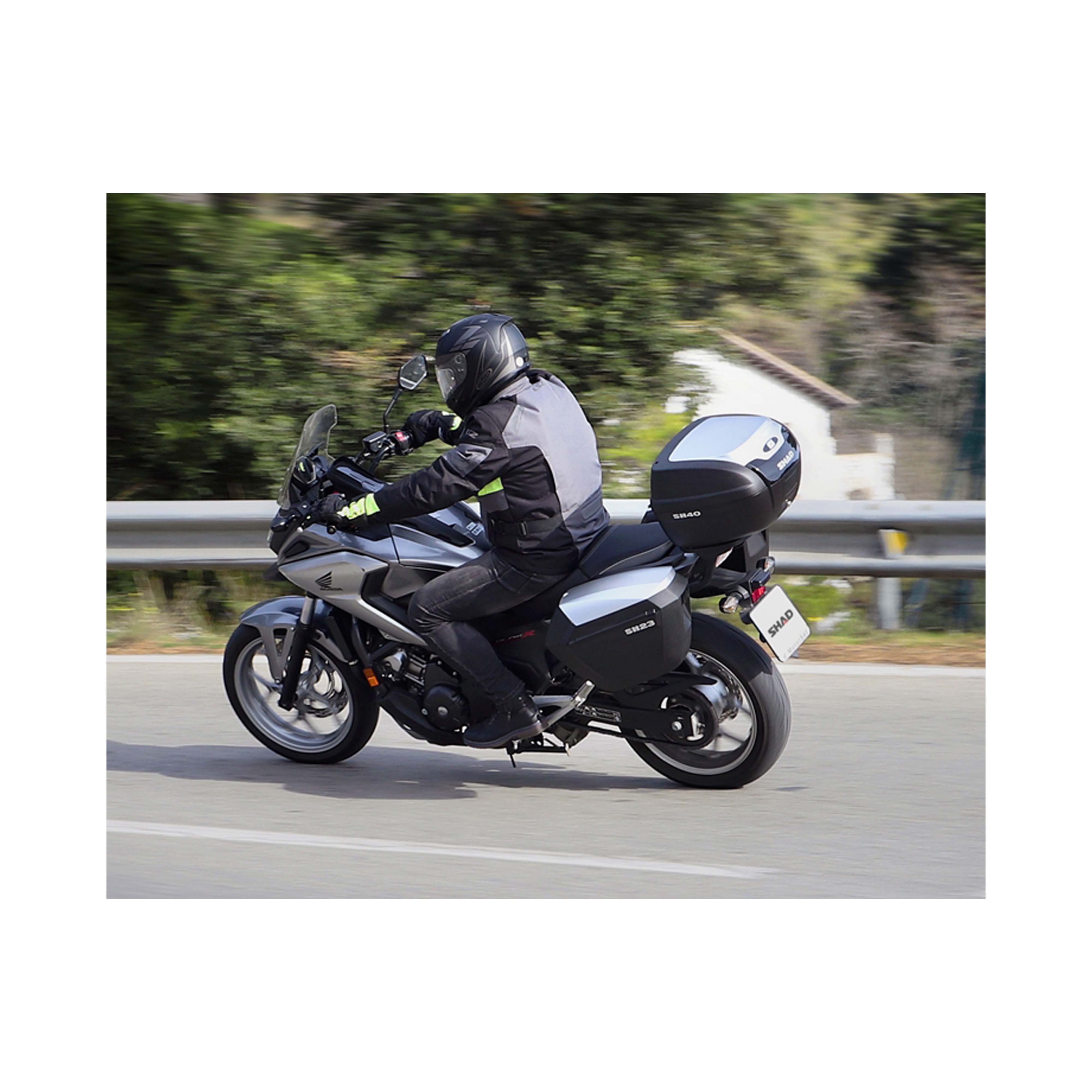 Le valigie laterali SH23 si distinguono per eleganza, leggerezza e funzionalità. Hanno una linea aerodinamica, sono impermeabili e molto robuste. Sono studiate per permettere di sfruttare interamente la capienza disponibile (23 litri) , mentre l’apertura superiore a pozzetto consente all’utilizzatore di accedere al carico senza dover scendere dalla moto.