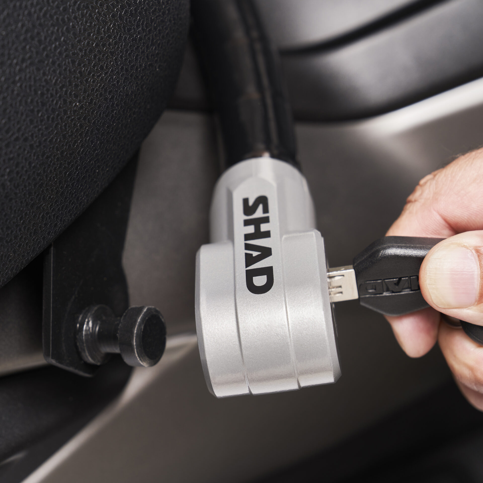Antirrobo de manillar SHAD LOCK para scooter SERIE 3 a combinar con la fijación específica para tu moto. Solución antirrobo compuesta de un candado y una fijación a tu moto.